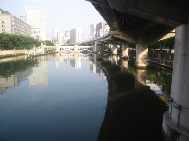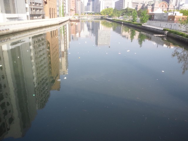 難波橋(ライオン橋)、プッカプカの土佐堀川。