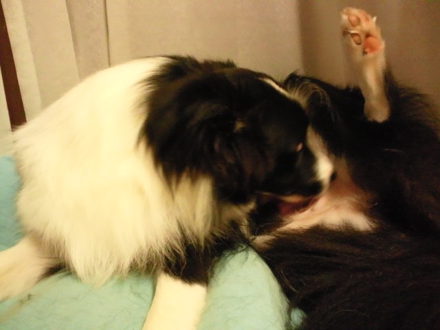 今朝も玄関でション。