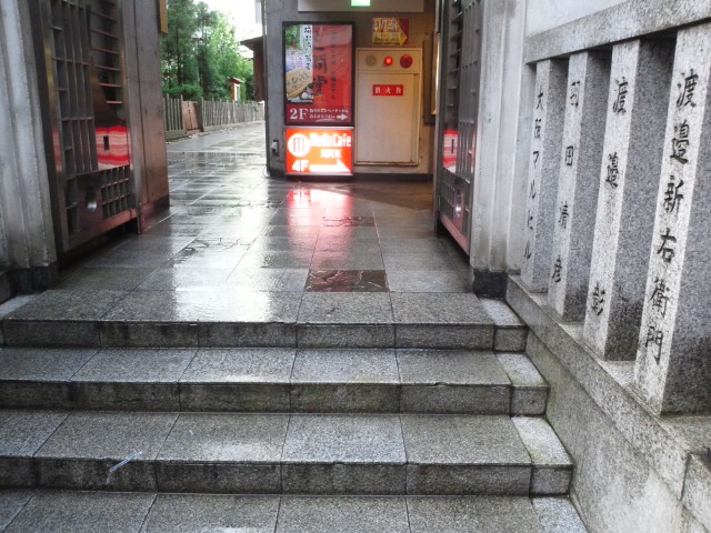 雨上がり、濡れた地面がきれい。お初天神。