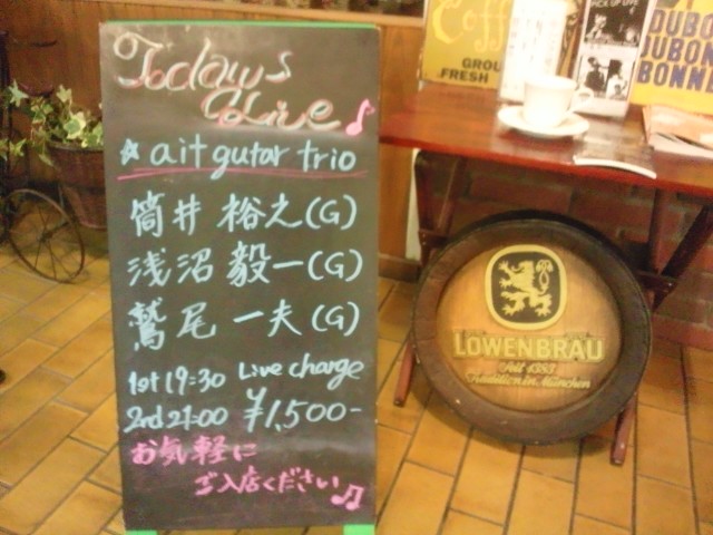 コテコテのJAZZってわけでもなく、いろんな音楽要素(フラメンコやロック、もちろんJAZZ)をギターの弦に込めて、なんとも言えないハーモニ。演奏家たちのキャラもすごくよく、非常に心地よい音楽でした。