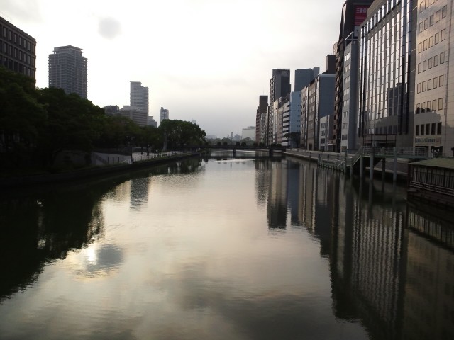 淀屋橋から土佐堀川、水位高し。