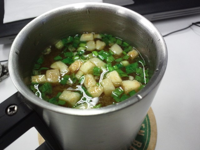 最近の即席味噌ズッペは豆腐入り。