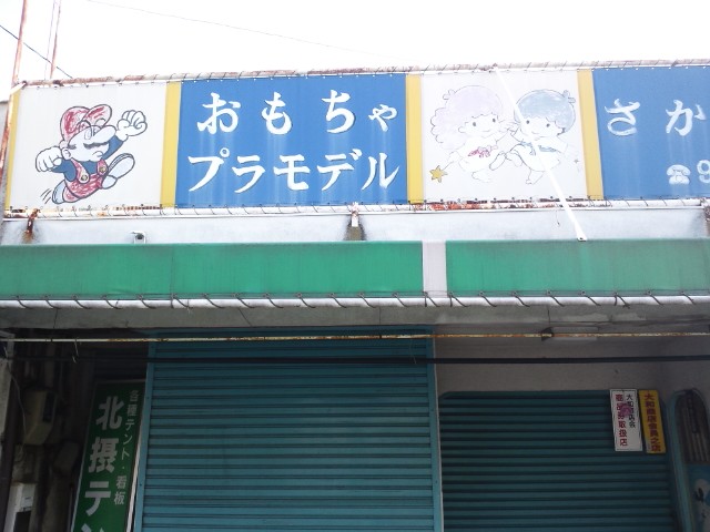 と、上のおもちゃ屋。ウィンドウの脇から。