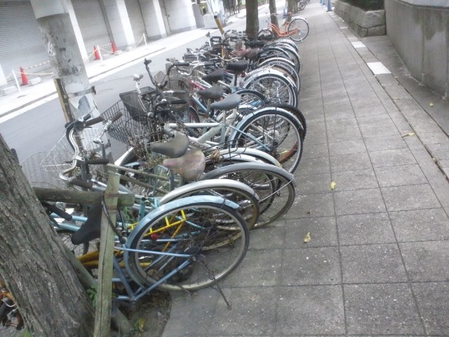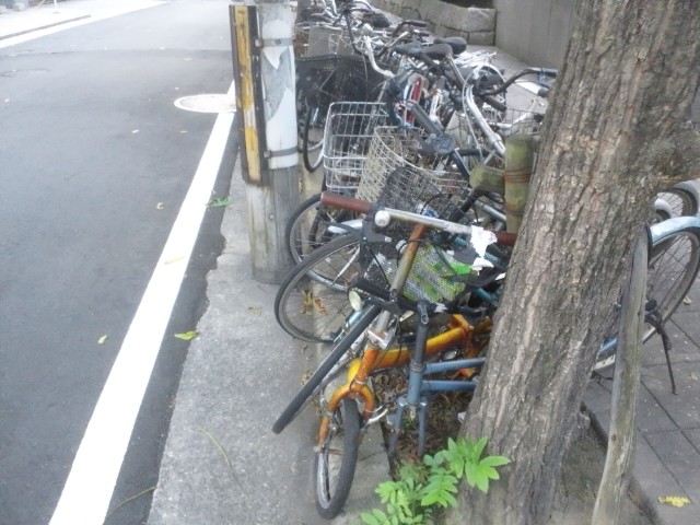 北浜の路上チャリ、手前のんは風化しかけてます。だあけみ