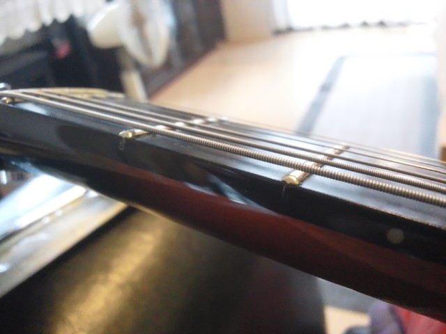 このP-1、他のギターに比べ、ダントツに弦高が低い。