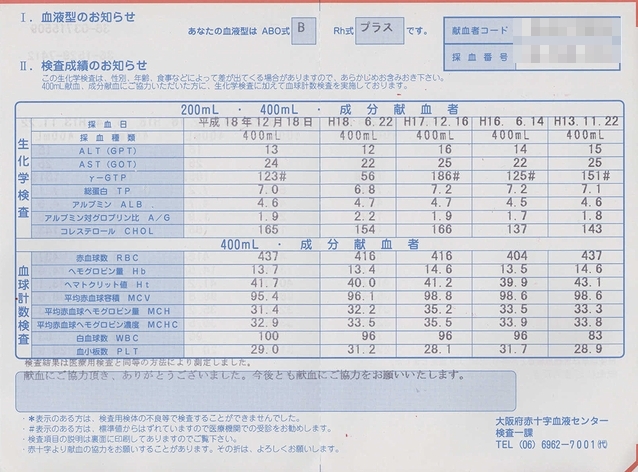 先日の献血結果。