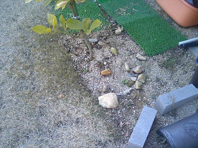 よってその肥料と水遣りの水分でその部分の芝は休眠しなかったと推測される。
