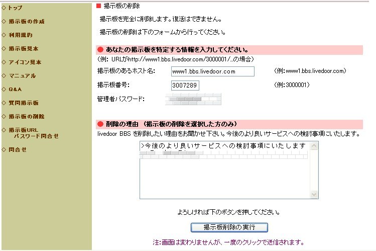 livedoor Free BBS サービスの提供は終了致しました