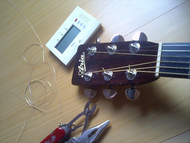 確か、3−6弦は1オクターブ違う弦が、1-2弦は同じ弦が張ってあるはずやねんけど・・・