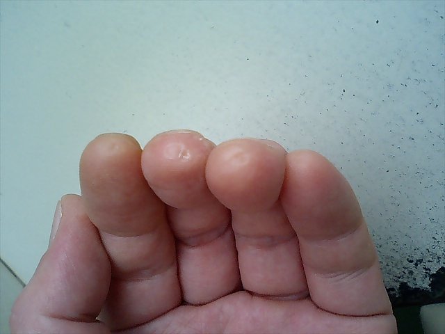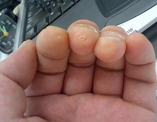 中指、剥けています。