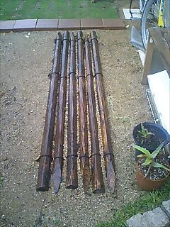 アプローチは杭をテレコに並べ