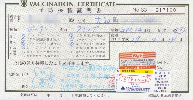 1年ぶりのワクチンだす。