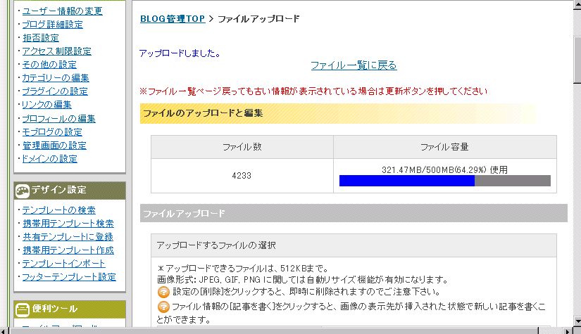 容量制限の8割を超えた時点で、アップ申請。