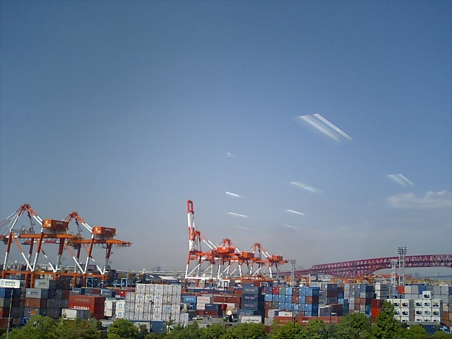 コンテナが積んであるところは、