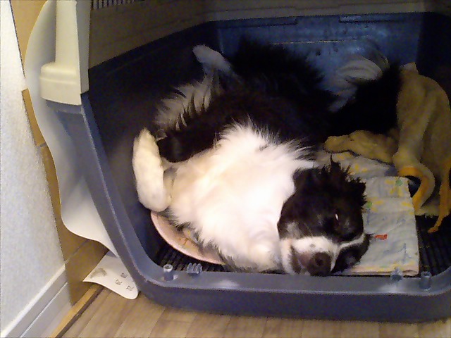 朝からヘソ天。