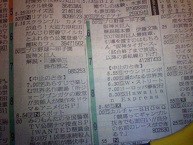 どなたかヨメハン様に電話して、野球見せるように言うたってぇな〜〜〜。