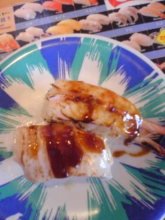 炙りビントロとエビやがな。