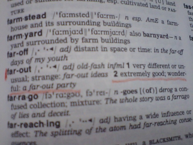 Longmanにはあるわ、Far-out・・・