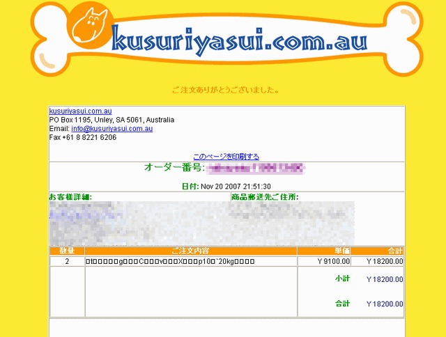 この度はkusuriyasui.com.auをご利用頂きありがとうございました。