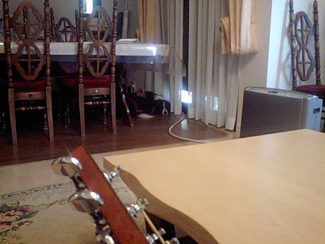 以前、私がギターを弾き始めると、Clip君退散してました。