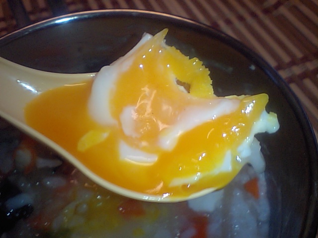 エビとイカの中華炒め雑炊たまご落とし。