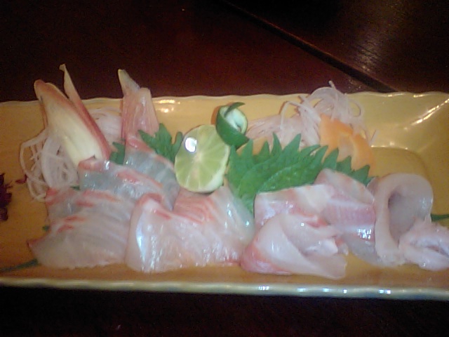 さっきまで泳いでいた黒鯛と生レバー。