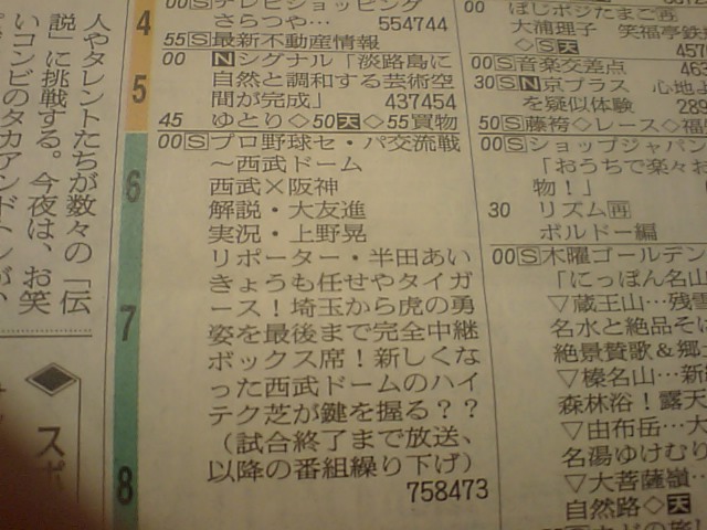 9Ch(TV大阪):F vs G(延長なし)
