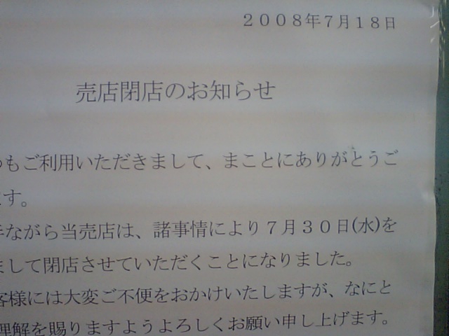 あるSNSで話題になっとった閉店。
