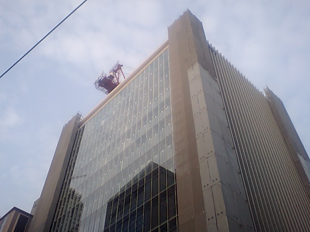 建設中のビルのテッペンにあるクレーン、