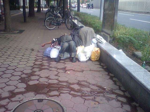 地下で寝るのやったらエエけど雨降ったらどないしはるねやろ??