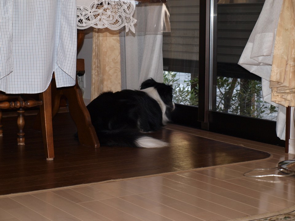 で、効いている間、お犬様、ケージにてすやすや寝ていらっしゃる。