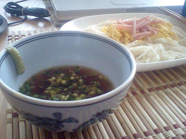 ソーメン冷や麦、わさびですばい、なた。