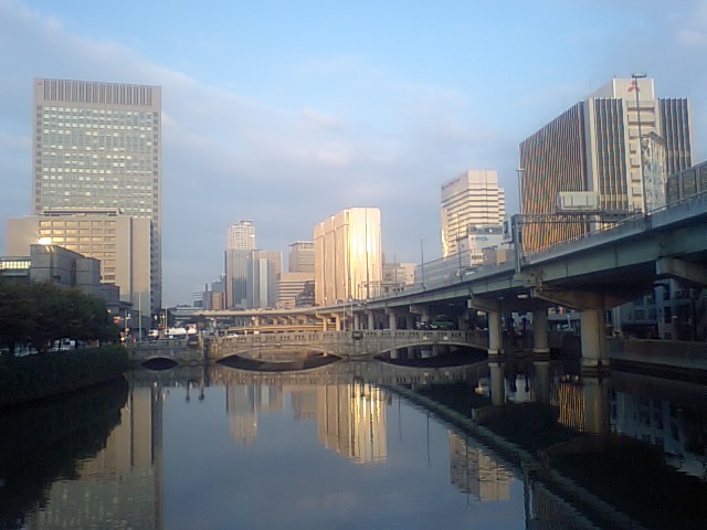 水晶橋から望む、堺筋本町あたりのビル。