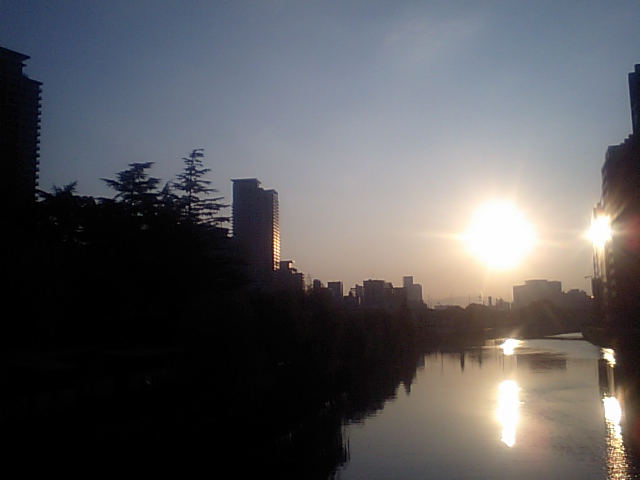 これも水晶橋から望む、中之島のビル群。