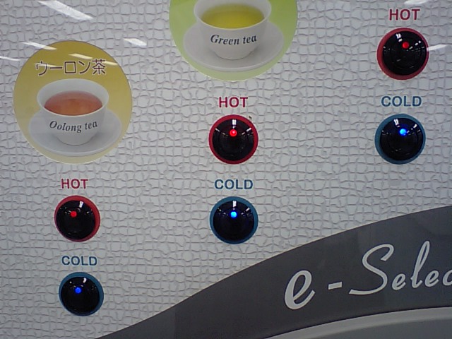 水、煎茶、烏龍茶、それぞれ冷温と選べます。