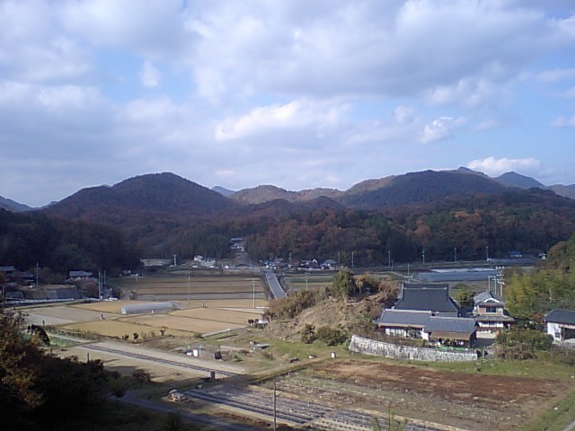 山の中、
