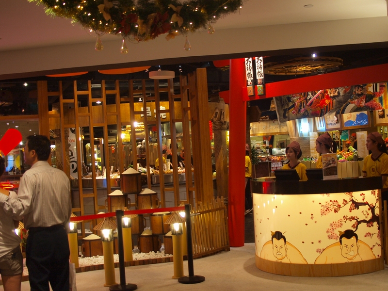入る時、磁気カードを渡され、食った店で値段データを入れられ、