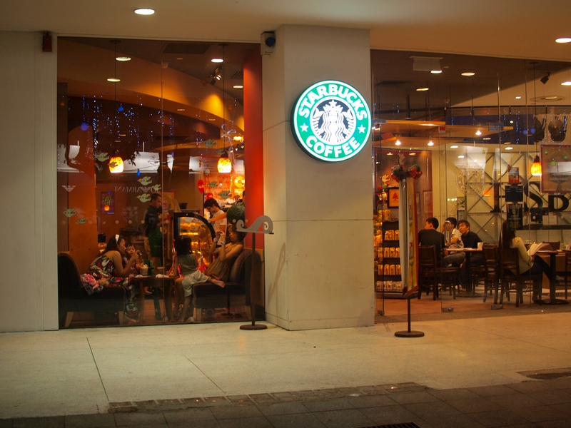 スタバと、下はホテル1階の24時間メシ屋。
