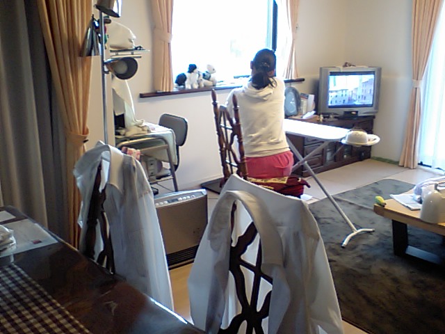 オヤジの通勤シャツ含めて完璧なアイロン仕事の3号君。