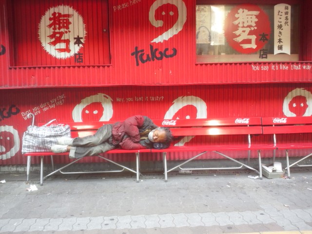 赤いコーンは何のため?? ホームレスが寝込まん様に??