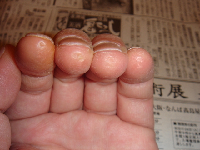 気になったのが左手の指先、コードを押さえる部分。