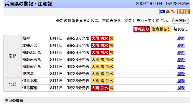 但馬南部に大雨洪水警報っっっ